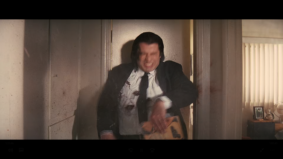 Now , there are a lot of things to say about this movie , from how everything was perfectly put together despite it not being in chronological order or maybe what is in that god damn suit case for fucks sake ! Or how the scene where Mia was about to overdose and Vince had to give her the adrenaline shot right through the heart . They filmed that scene backwards where the needle was already in her and Vince pulled it out , reverse that footage and you get a safe " Adrenaline Shot Scene "