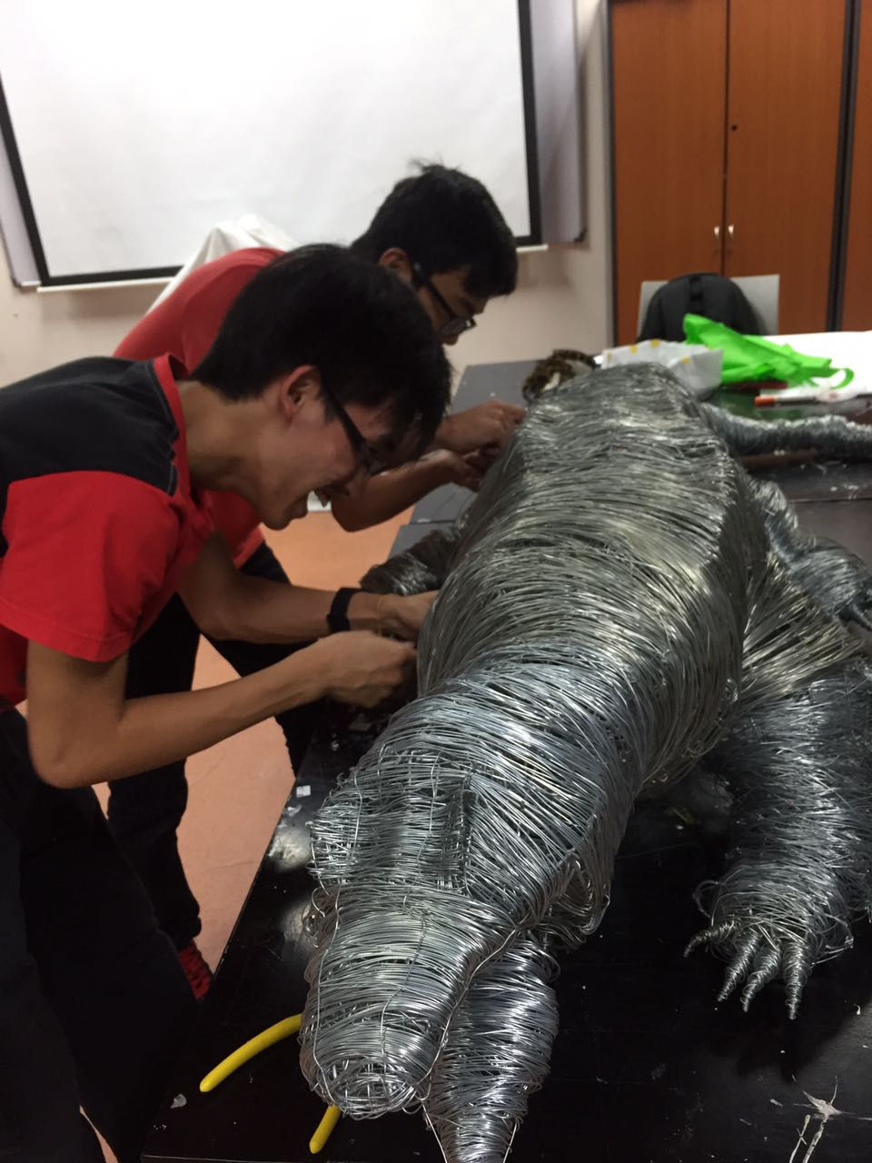 Everything has been successfully connected and it's starting to look like a Metal Sculpture. We also wrapped up the legs , head and tail.